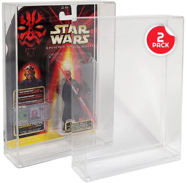 Safeguard your carded Star Wars and GI-Joe figures with acrylic action figure case. Acid-free, PVC-free, and UV-resistant, it offers superior protection. Handmade with full rails, it ensures stability and a crystal-clear view for elegant display.