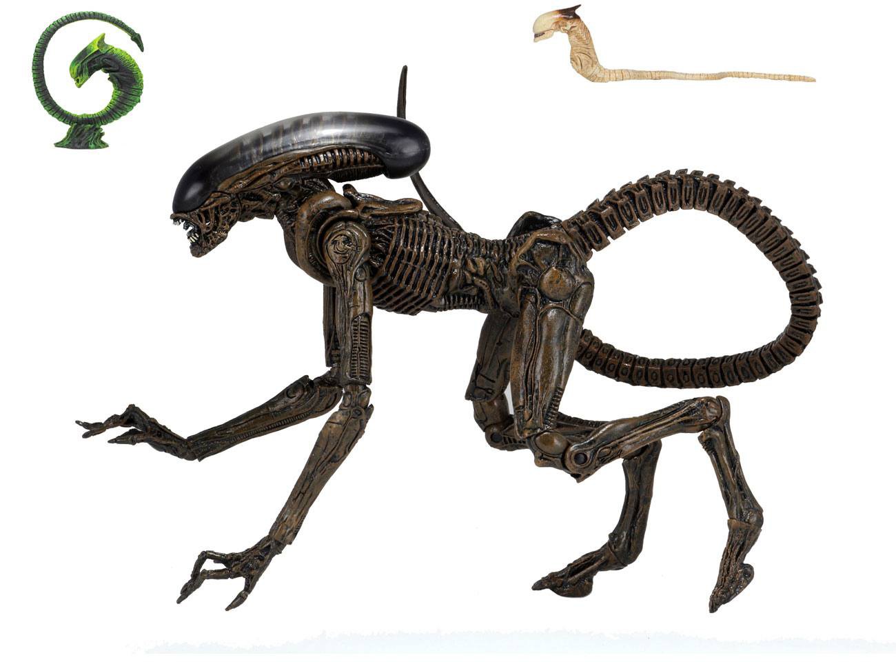 Xenomorphhunden har fått en lyxbehandling med en helt ny skulptering och förbättrad artikulation, inklusive en utdragbar inre mun och böjbar svans. Dog Alien levereras med en klassiskt ihoprullad drottningburster och en chestburster.