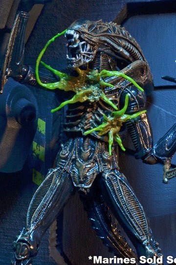 The Xenomorph Warriors feature 2 unique battle-damaged sculpts and stand over 23 cm tall. They utilize the new "Ultimate" Alien body, which has many upgrades, including added articulation and increased range of motion in upper torso and neck, plus a re-engineered tail assembly which provides an additional swivel as well as having a bendable portion. Over 30 points of articulation.