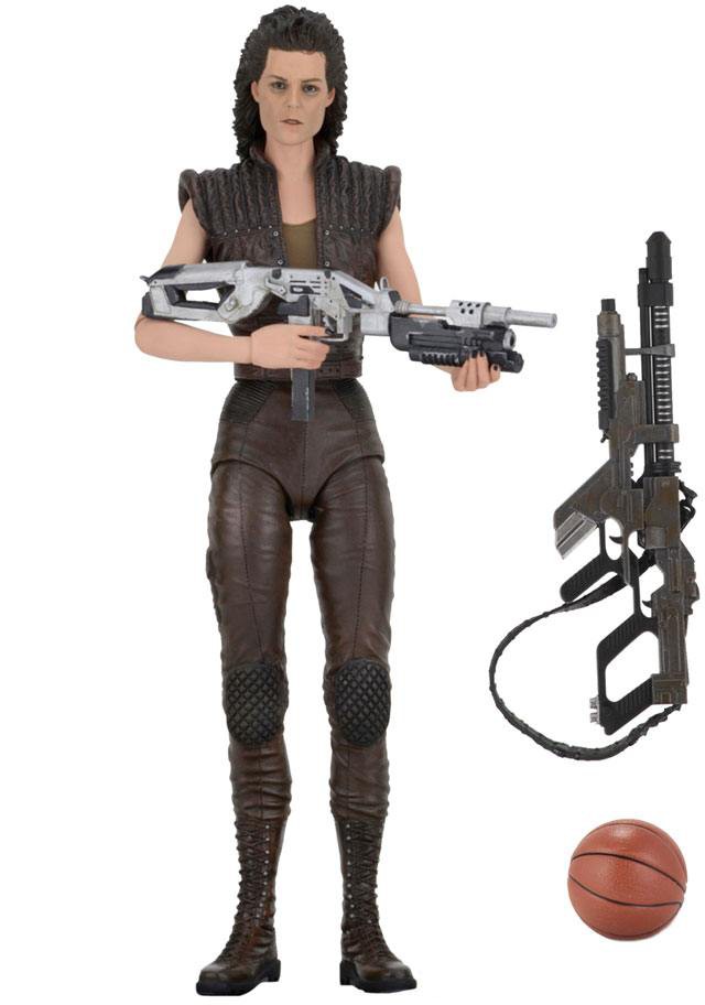 Ellen Ripley Clone 8 stands approximately 18 cm tall, has over 25 points of articulation and features the likeness of Sigourney Weaver. She wears the clone's futuristic ensemble and comes with Draco Double Burner and Lacrima 99 Shockrifle accessories, plus interchangeable hands and a basketball. The Resurrection Warrior stands over 9" tall and is faithful to the Alien's appearance in the movie. It features over 30 points of articulation, including a tail assembly which provides an additional swivel as well as having a bendable portion.