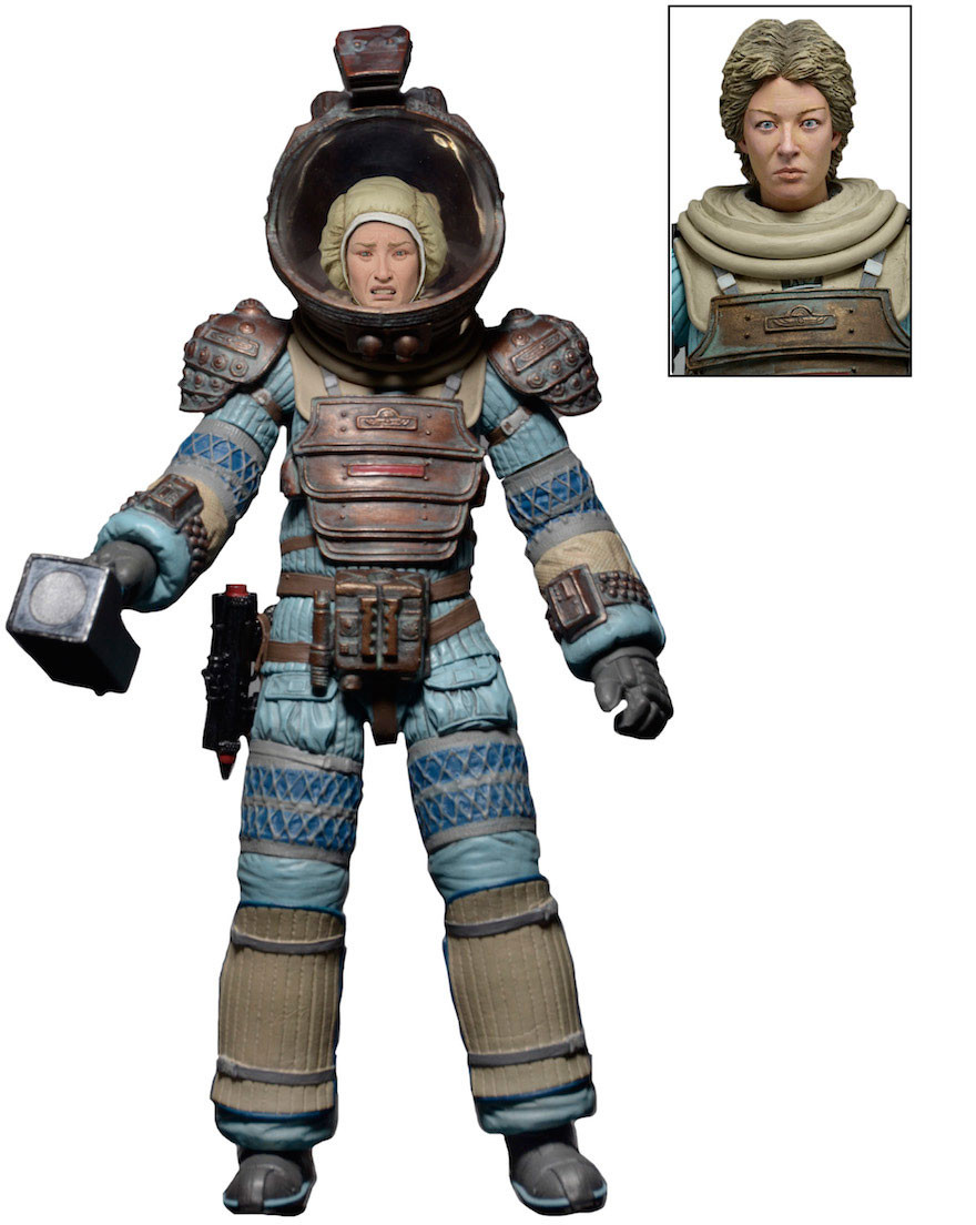 Joan Lambert, navigator of the USCSS Nostromo, stands approximately 18 cm tall and features the likeness of Veronica Cartwright. She comes with two heads, removable helmet and flashlight accessory.