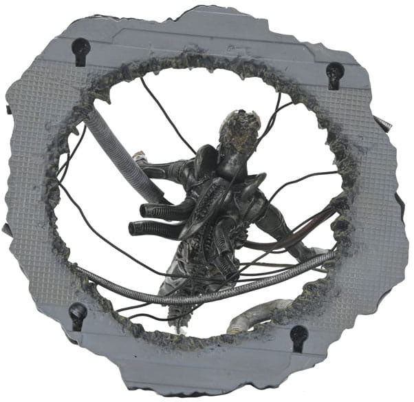 the very blood that gave scientists access to the DNA of the ultimate killing machine. This deluxe figure from NECA features posable wires to hang the maimed Xenomorph and includes a display piece of the acid-burned lab ceiling designed for mounting on your wall or ceiling.