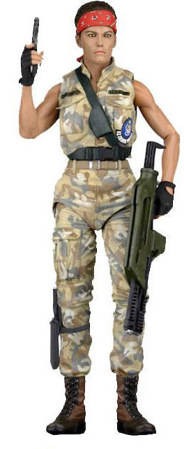 Ripley stands approximately 18 cm tall, has over 25 points of articulation and features the likeness of Sigourney Weaver. She wears a bomber jacket over blue coverall and comes with pulse rifle accessory and attachable muzzle flash.