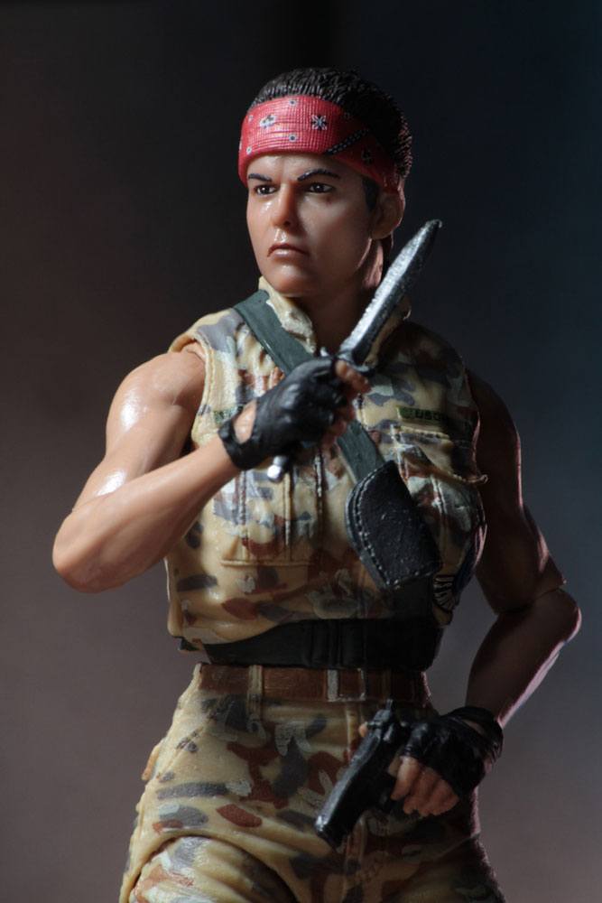 Vasquez stands approximately 17 cm tall and features the likeness of Jenette Goldstein. Vasquez is seen in her alternate outfit and the Marine gear is completely faithful to the movie, down to the "LOCO" detailing on the back of her vest. Vasquez has over 25 points of articulation and comes with pistol, knife and pulse rifle with attachable muzzle flash.