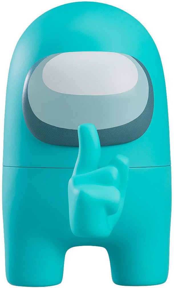 Cyan Crewmate actionfigur som kommer med ett figurställ, en hand, en benbit och ett klistermärke.