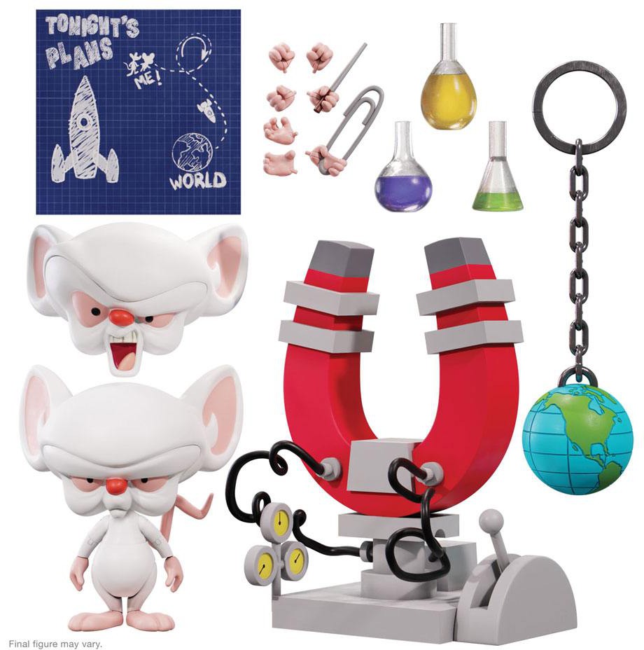 Are you pondering what he's pondering? If so, you may be ready to help The Brain TAKE OVER THE WORLD! This 7" scale highly-articulated Animaniacs ULTIMATES! figure of The Brain features premium detail and comes with interchangeable heads & hands, and a variety of other world-conquering accessories. So when deciding what you're going to do tonight, instead of trying to take over the world, you should hatch a plot to acquire the made-to-order The Brain ULTIMATES! figure