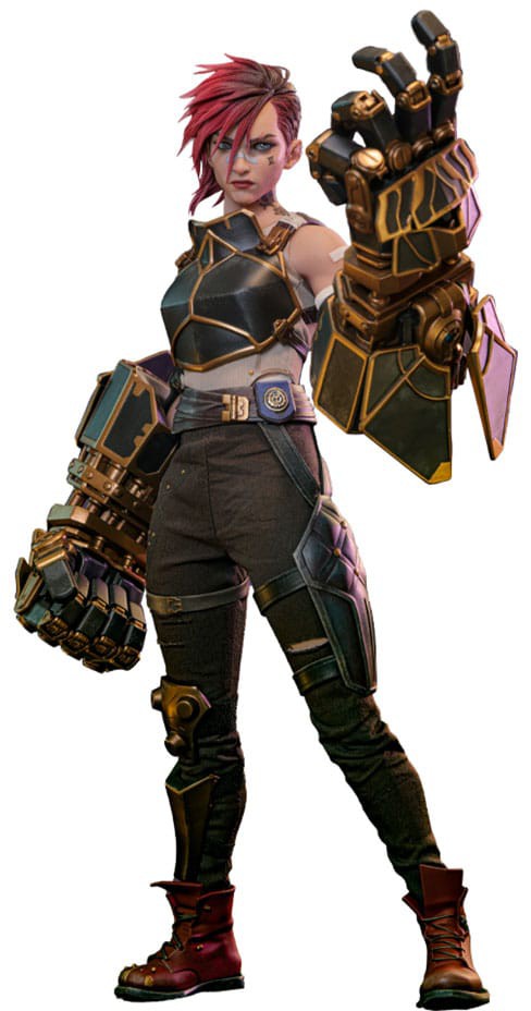 Inspirerad av Vi's säsong 2 avsnitt 9 utseende i den sista striden mot Ambessa och Viktors utvecklade styrkor, är denna Hot Toys 1/6: e skala samlarobjekt utsökt utformad och skulpterad med en otrolig likhet på skärmen i hennes ansiktsdrag och uttryck. Från hennes våldsamma magenta och svarta underklippta frisyr till hennes imponerande tatueringar och armförband har ingen detalj förbisetts på denna slagkraftiga Arcane-huvudperson.