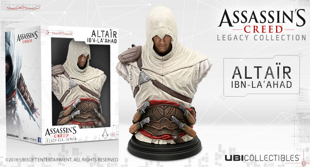 UBIsoft is proud to present this beautiful Bust from the Legacy Collection series. This Altair Ibn-La'Ahad Bust is made of PVC with a height of 19 cm and a weight of 450 g. This figurine will be delivered in a window box.