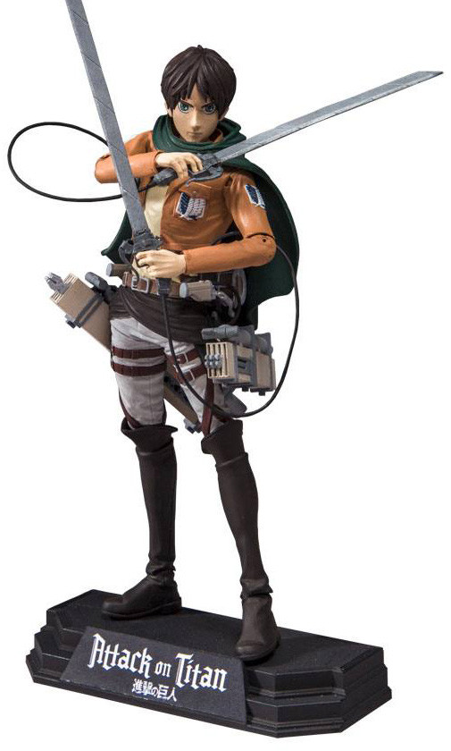 Straigt from the manga/anime´Attack on Titan´ comes this action figure of Eren Jaeger. It stands approx. 18 cm tall and comes with accessories and base in a numbered collector edition window box.