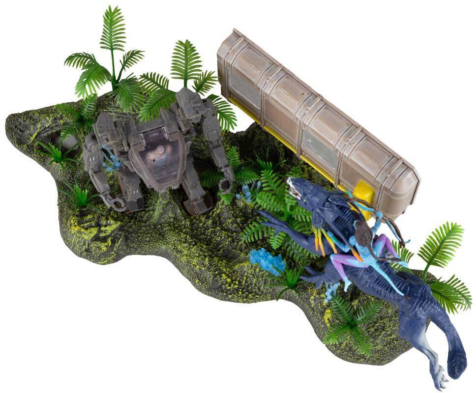 Relive the epic fight for Jake Sully's life at the Link Shack site with this iconic set. Neytiri wearing her Omatikaya warpaint and carrying her father's bow, rides the majestic Thanator into battle against Colonel Miles Quaritch and his powerful AMP suit.