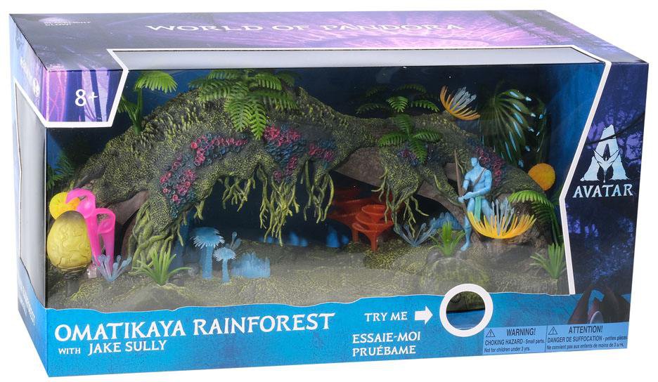 Ge dig ut på en resa till en värld utan dess like. Regnskogen är full av förundran och hem till Omatikaya-klanen som delar en djup koppling till den naturliga världen runt dem. Med en flora från Pansora, en Jake Sully-figur med 6 artikulationspunkter och inbyggda blacklights för belysning, är detta det ultimata setet för att bygga ut Pandoras värld hemma.
