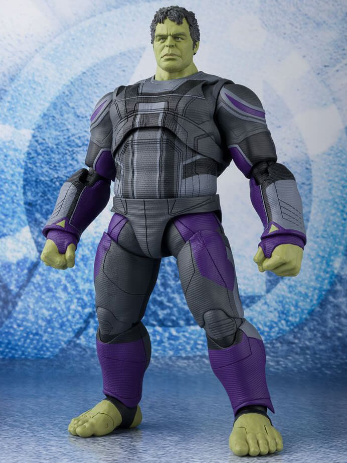 Hulk från Avengers: End Game, går med S.H.Figuarts! Jämfört med Avengers: Infinity War-versionen representerar Tamashii digitala färgteknik hans ansikte och huvud som fått utseendet på Bruce Banner själv. Denna uppsättning innehåller 1 valbart huvud och 1 valbar uppsättning höger / vänster hand.