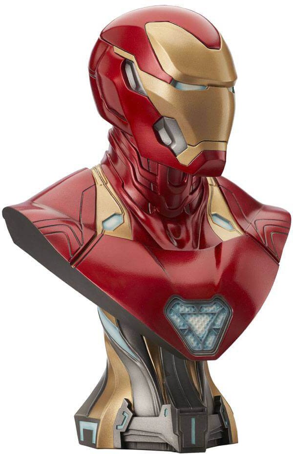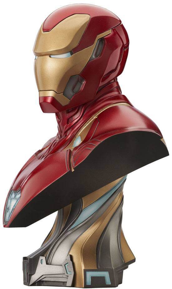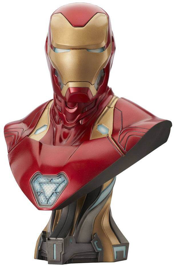 Baserad på hans framträdande i Avengers: Infinity War, har denna skala byst av Iron Man detaljerade skulpterings- och färgapplikationer och sitter ovanpå en detaljerad piedestalbas. Begränsad till endast 1 000 exemplar kommer den förpackad med ett numrerat äkthetscertifikat. Designad av Joe Allard, skulpterad av Joe Menna!