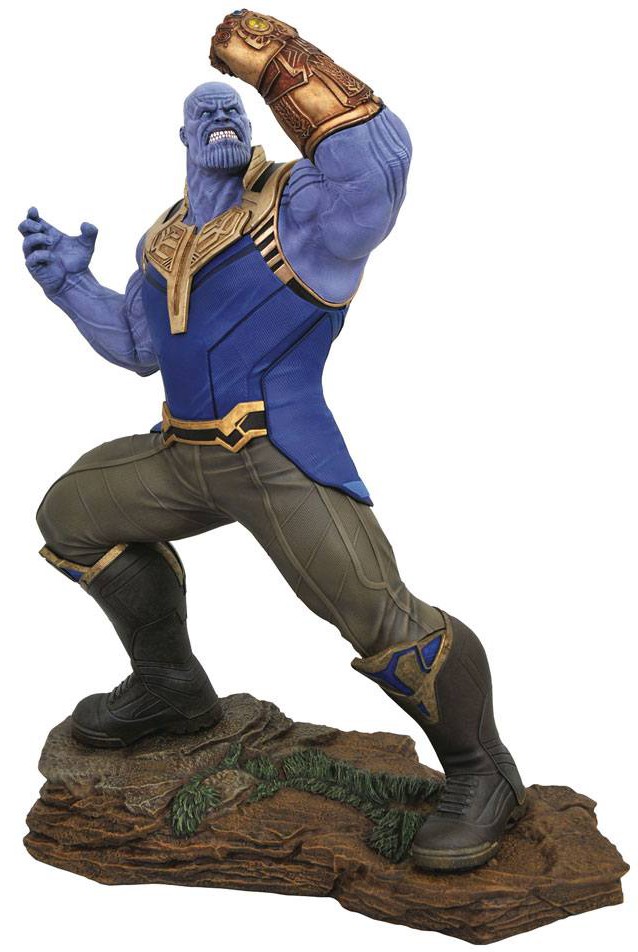 Thanos triumphant! The mad titan has collected all of the Infinity Gems, and raises his gauntlet in victory in this new statue in the Marvel Milestones line! In scale to other Milestones pieces, this 51 cm sculpture can display with the Infinity War Thor statue or on his own, and is limited to a numbered edition of only 1,000. Snap him up before he snaps his fingers! Packaged with a certificate of authenticity in a full-color box. Designed by Joe Allard and sculpted by Jorge Santos Souza!