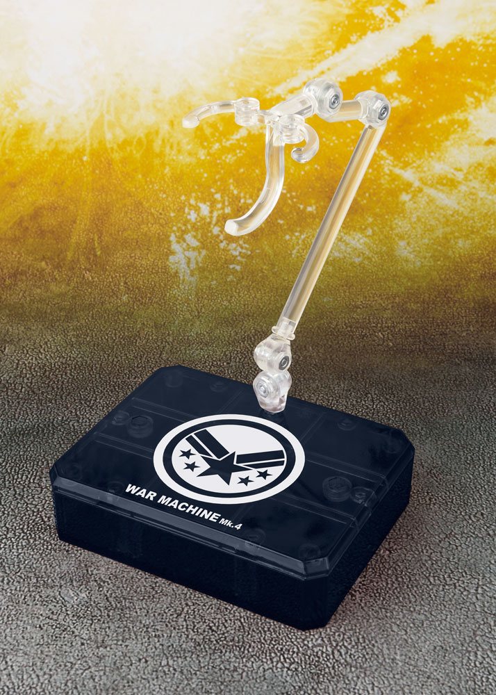 War Machine is finally being released from the Avengers Infinity War! A special display stage is included, perfect for displaying him in his flying mode! The set includes an exchangeable hand parts×3 each, a special weapon set, effect for the weapon(small×2 large×2), a display stage, jet effect×2, and a machine gun muzzle flash effect part.