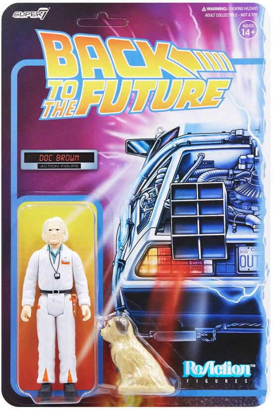 Safety first! Doc Brown knows that powering a DeLorean with plutonium calls for proper safety gear! This 3.75" articulated Back to the Future ReAction figure of 1985 Doc Brown is adorned in his radiation suit and has a stopwatch that matches the one that comes with his Einstein the dog accessory. You don't have to be a genius inventor to realize that the 1985 Doc Brown ReAction figure will be a timeless addition to any Back to the Future collection.