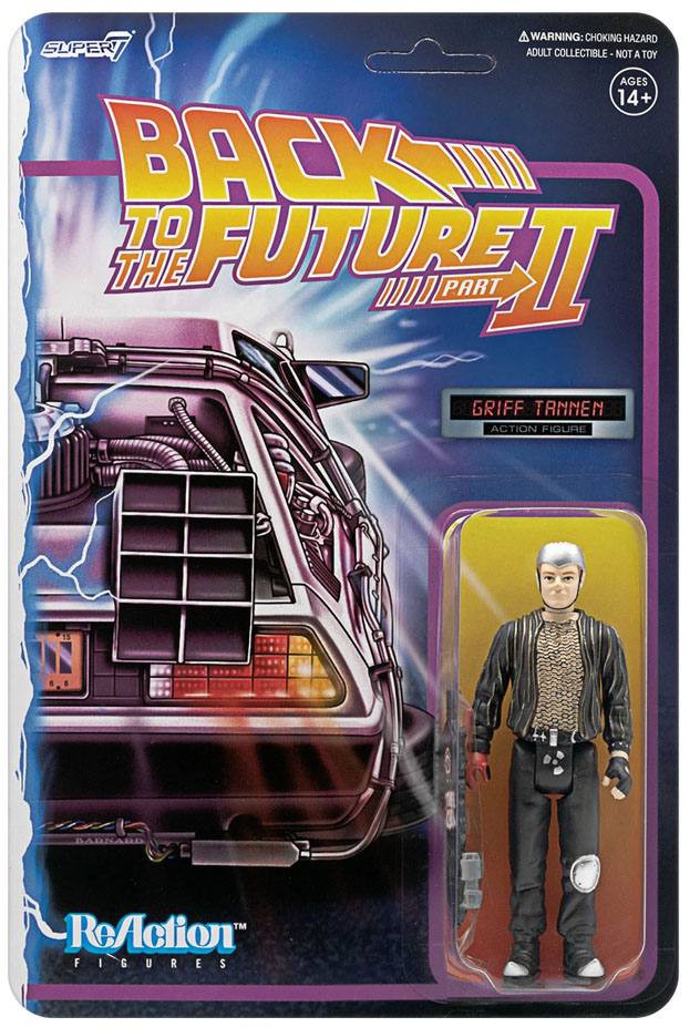 "Batter up!" Direct from Back To The Future II is the Griff Tannen 3.75" ReAction from "the future" of 2015. Griff comes ready for the chase with hoverboard accessory.