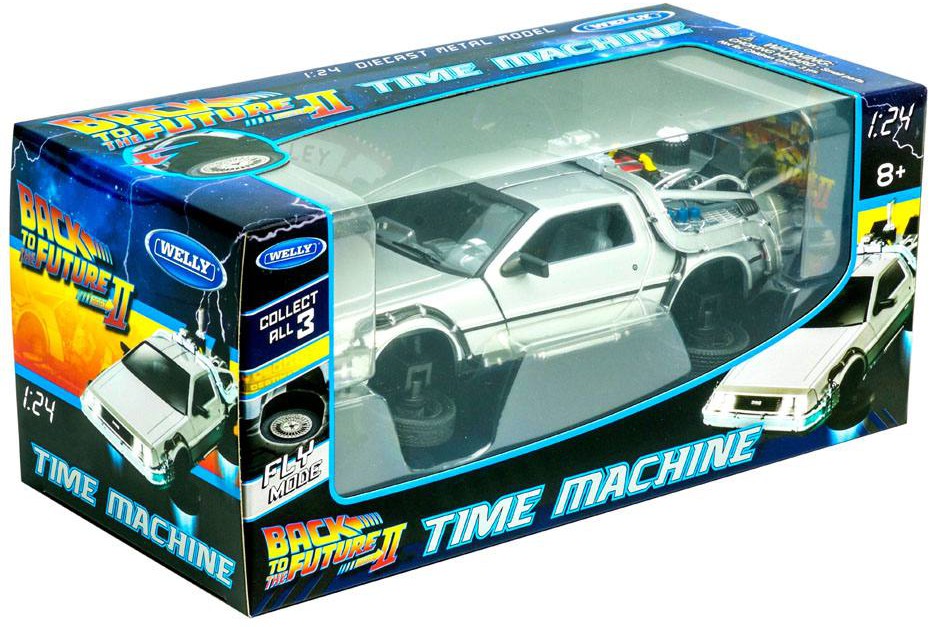 Från kultfilmstrilogin "Back to the Future" kommer denna fantastiska diecast-modell av den tidsresande DeLorean. Den exakta replican i skala 1/24 är ca. 18 cm lång och kommer i en fönsterkartong.