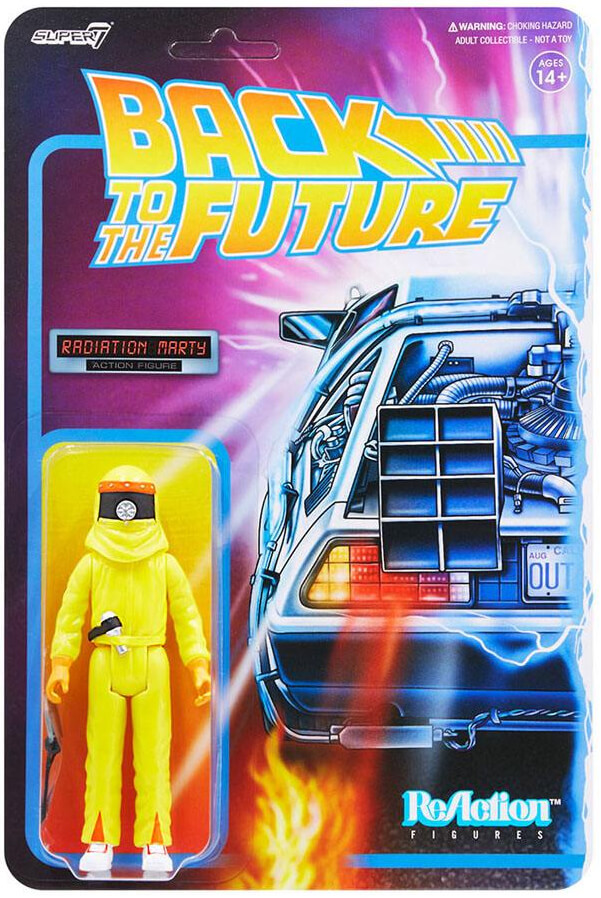 He may not be an extraterrestrial from the planet Vulcan, but Marty McFly has to bend the truth a bit if he's going to scare his reluctant would-be father into asking his mother to the dance! This 3.75" articulated Back to the Future ReAction figure of Marty McFly is wearing his certain space movie inspired radiation suit with a removable helmet and comes with blow dryer "weapon" and Walkman accessories. It's no stretch of the truth to say that the Marty in Radiation Suit ReAction figure will be a timeless addition to any Back to the Future collection.