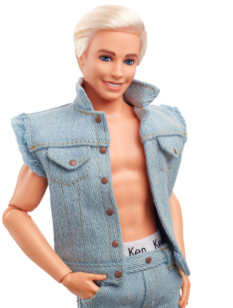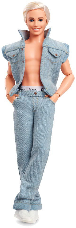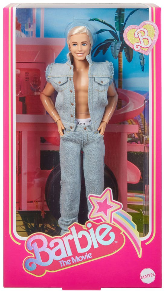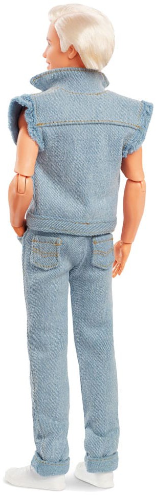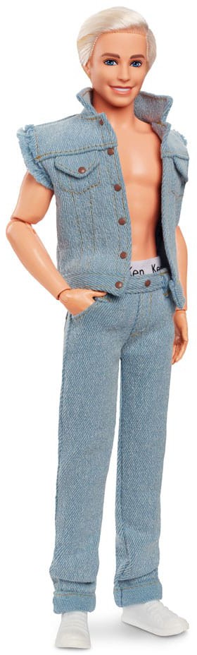 Greetings from Barbie Land! Inspired by Ken's character in Barbie™ The Movie, this collectible Ken® doll wears a head-turning denim look. With his unbuttoned vest and iconic Ken® boxers peeking out from his jeans, he captures all of film Ken's signature style! Celebrating Barbie™ The Movie, this Ken® doll makes a great gift for fans and collectors alike. Doll stand included. Doll cannot stand alone. Colors and decorations may vary.