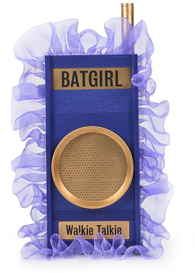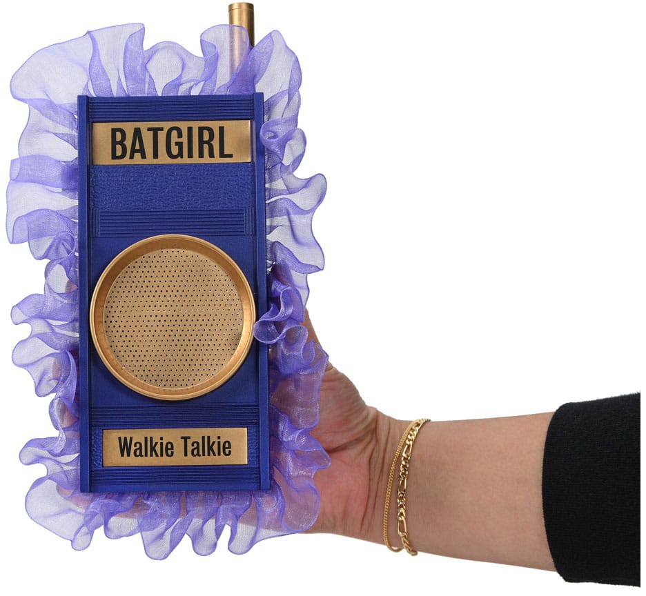 NECA's DC Prop Replica line expands to include items from the beloved 1966 Batman television series. This campy classic TV show brought the adventures of the dynamic duo to life with puns galore and plenty of Bat-Gadgets. This replica of Batgirl's Walkie Talkie is screen accurate, from the helpful nametag to the color-coordinating ribbon frill (crime-fighting in style!). Featuring an extendable antenna, this replica measures approximately 7 inches tall. No sound features. Closed box packaging.