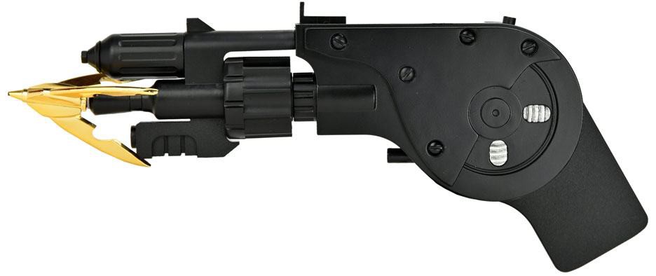 This full-size replica of Batman's signature gadget, the Grapnel Launcher, is over 7? in length, with a screen-accurate foldable handle, grapnel hook attachment and a motorized spool that retracts the rope and hook after firing.