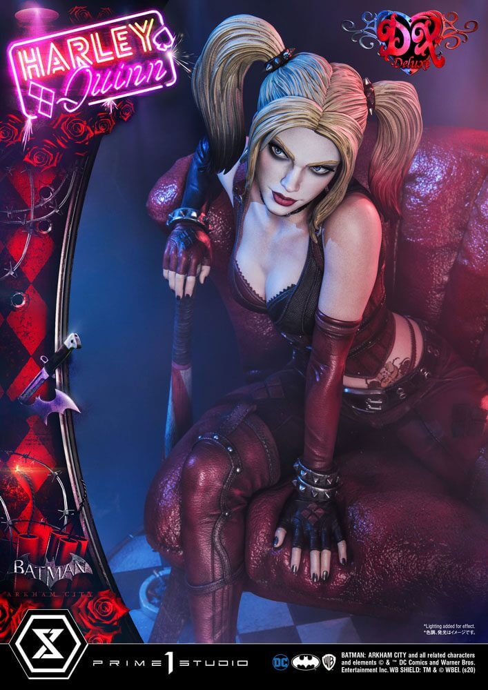 Denna 1/3 skala har en av huvudskurkarna i den tidlösa action-äventyrs mästerverket, Harleen Quinzel. Harley är en mästare på akrobatik som använder sin galenskap och oförutsägbarhet som sitt vapen. Troende att hon är Jokerns älskarinna, kommer hon göra vad som helst han befaller. I Batman: Arkham City är Harley Quinn desperat att hitta botemedlet mot Joker och hon utmanar Batman som en stor hot genom hela spelet.