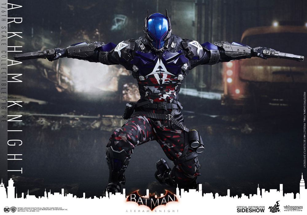 Expertly crafted based on the stylish appearance of Arkham Knight in the game, the collectible figure features a detailed LED light-up helmet, skillfully tailored camouflage battle suit with armor plating, an assortment of handguns and a sniper rifle, and an Arkham Knight themed figure stand with a backdrop!