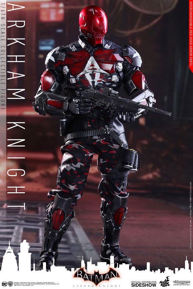Furthermore, an interchangeable red colored helmet and a set of armor parts are included to transform the Arkham Knight into Red Hood! It is time to recruit this insanely cool Arkham Knight to your prized collection!