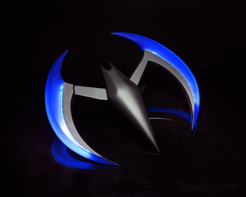 Full-size Batarang prop replica från Batman Beyond. Batarangen är utrustad med blå LED-belysning som kan slås av och på.