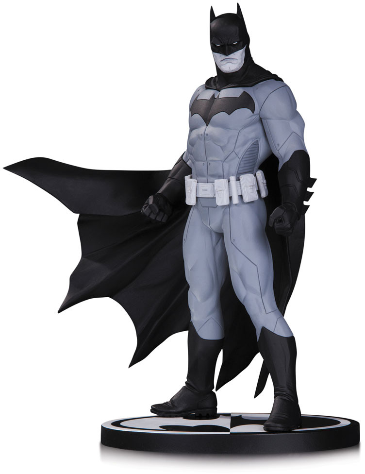 The Dark Knight stands watch over Gotham City in this new Batman Black and White statue designed by