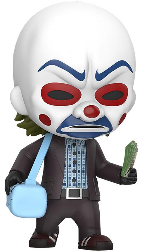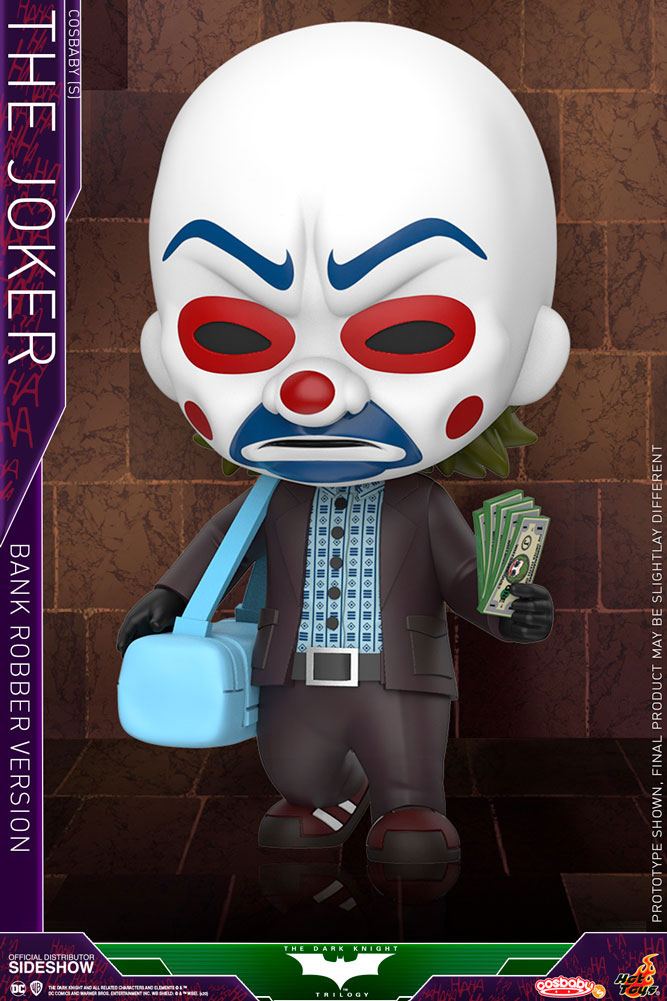In The Dark Knight, master of evil The Joker ravages Gotham City intent on destroying Batman. He is always prepared to bring chaos and cause terror in the city. Adding on to The Dark Knight Cosbaby collectible series, Sideshow and Hot Toys present the Joker (Bank Robber Version) Cosbaby. Each Cosbaby figure measures approximately 12 cm tall including figure base. Joker (Bank Robber Version) features navy blue suit and a maniacal expression carrying a bag full of money, comes with a specially designed clown mask that's wearable on his face!