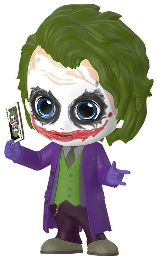 In The Dark Knight, master of evil The Joker ravages Gotham City intent on destroying Batman. He is always prepared to bring chaos and cause terror in the city. Adding on to The Dark Knight Cosbaby collectible series, Sideshow and Hot Toys present the Joker Cosbaby. Each Cosbaby figure measures approximately 12 cm tall including figure base. Joker in crazy green hair and smudging clown makeup has put on his classic purple coat, holding playing cards in one hand trying to leaves his mark everywhere he goes.