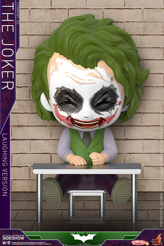 In The Dark Knight, master of evil The Joker ravages Gotham City intent on destroying Batman. He is always prepared to bring chaos and cause terror in the city. Adding on to The Dark Knight Cosbaby collectible series, Sideshow and Hot Toys present the Joker (Laughing Version) Cosbaby. Each Cosbaby figure measures approximately 12 cm tall including figure base. Joker (Laughing Version) features Joker at the interrogation desk looking at you with a cunning smile.