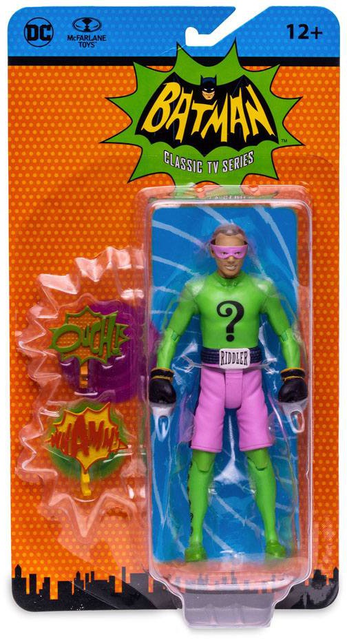 The Riddler actionfigur baserad på klassiska Batman tv serien från 60-talet. Figuren är ca 15 cm hög och kommer i en retroinspirerad blisterförpackning.