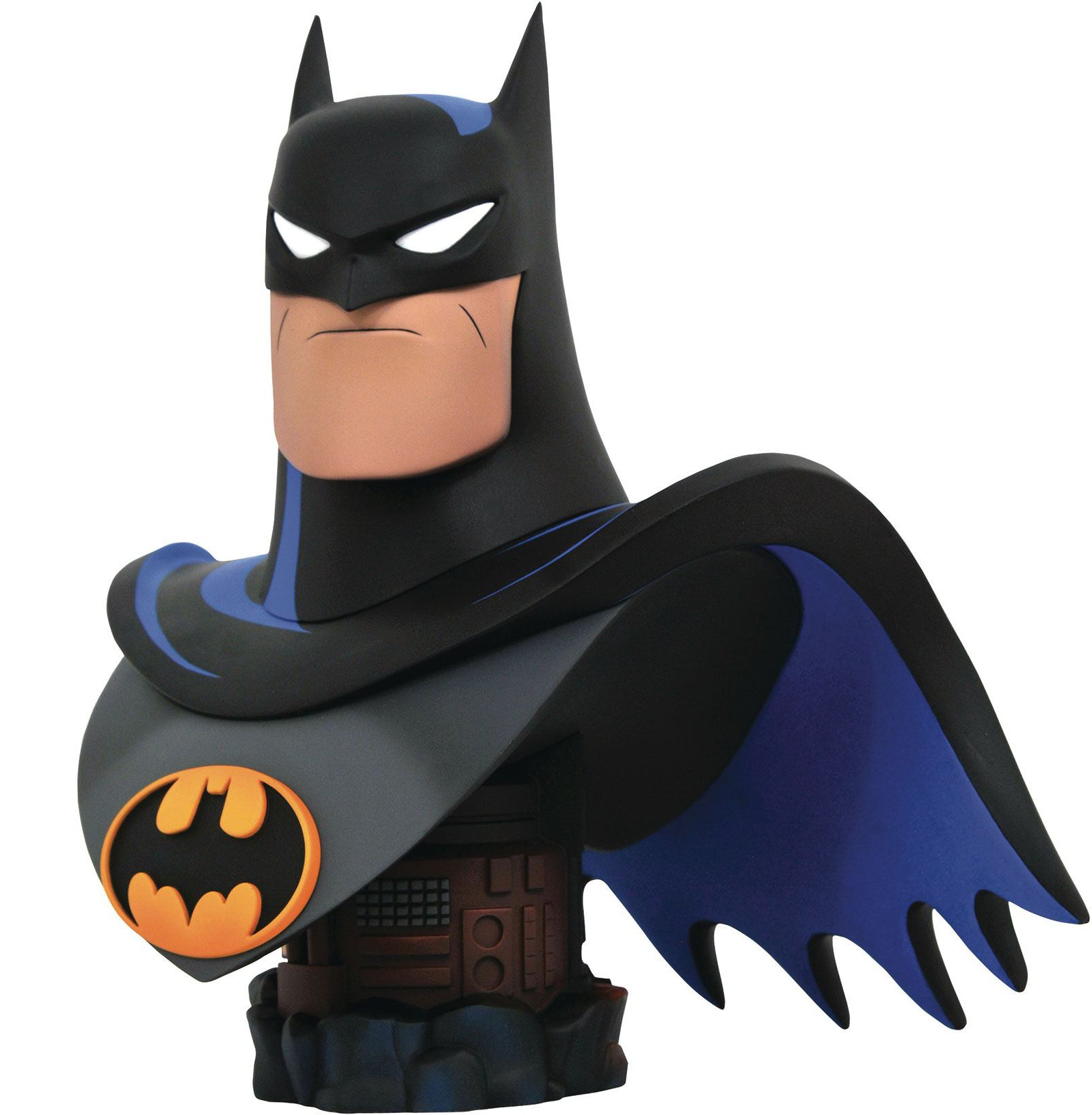 A Diamond Select Toys release! Pay tribute to the Legend of the Dark Knight with this half-scale bust of Batman, as he appeared in Batman: The Animated Series! Part of the Legends in 3D line of busts, this approximately 25 cm portrait is limited to only 1,000 pieces, and comes packaged in a full-color box with a hand-numbered certificate of authenticity.