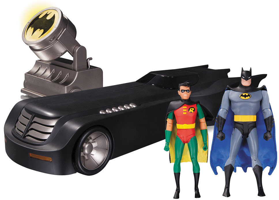 DC Collectibles presenterar the Batmobile från Batman the Animated Series. Tillhörande actionfigurer av Batman och Robin medföljer.