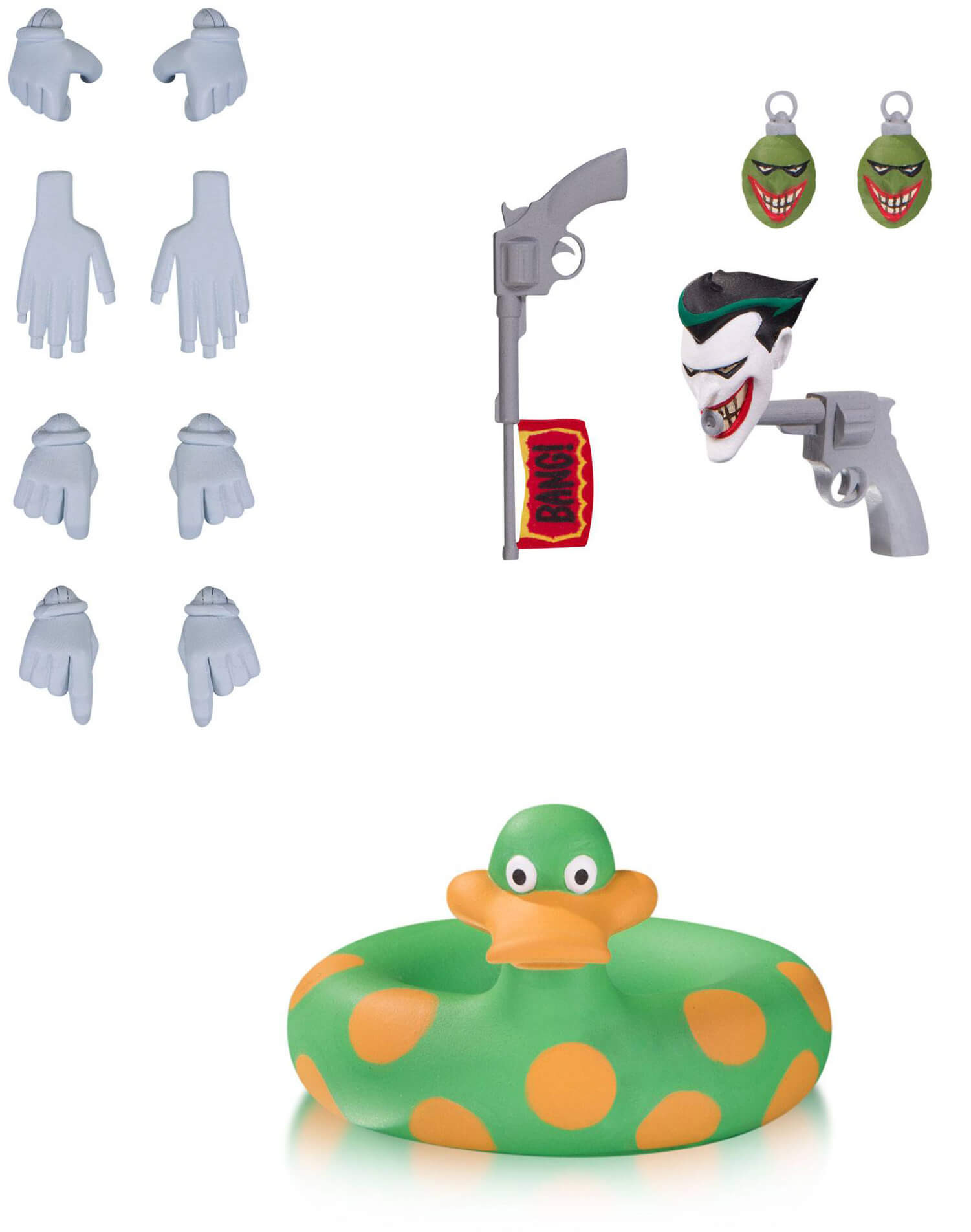 Get ready for this special addition to the Batman: The Animated Series action figure line! Watch out for the the Joker but this time the action figure comes with a whole box of accessories including a myriad of all new faces, six pairs of hands and a few toys like his trademark Joker grenades and duck floaty.