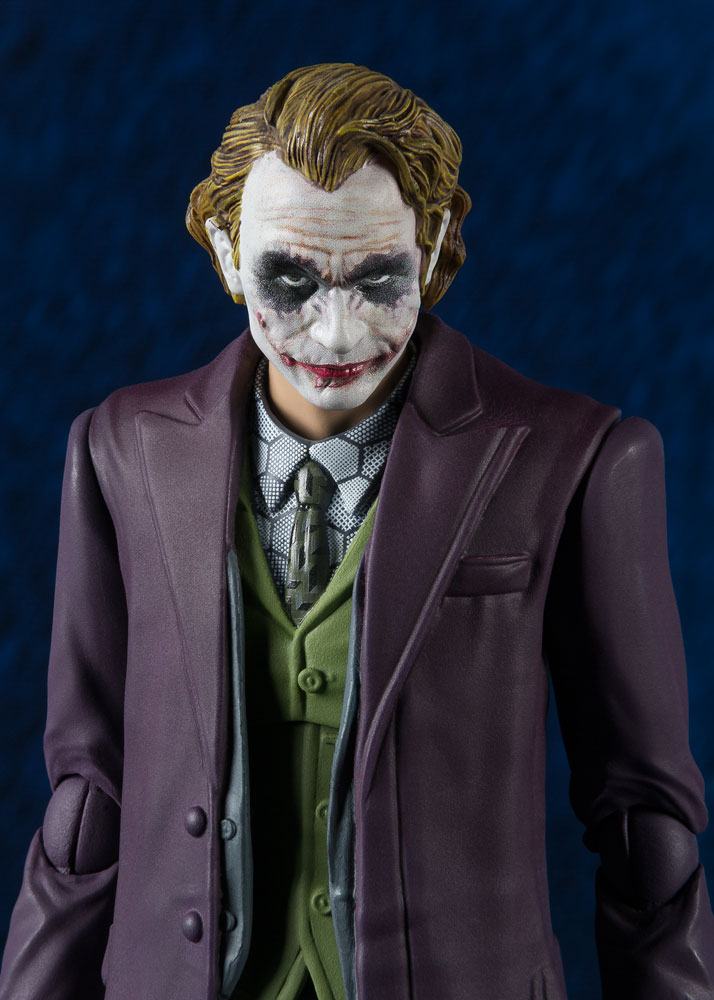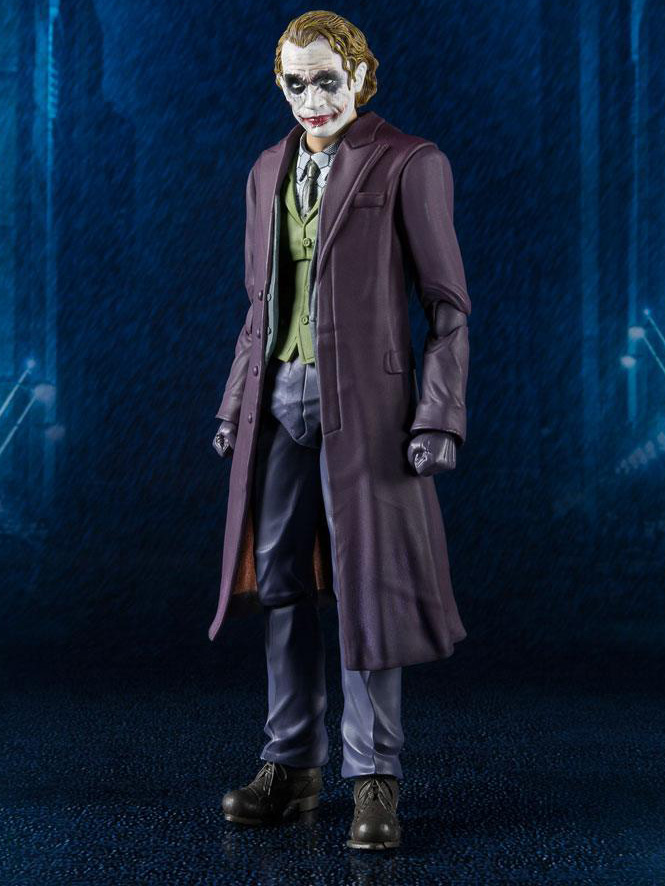 "Why so serious?" The Joker from The Dark Knight joins the S.H.Figuarts lineup! This accurately detailed and highly posable 155mm figure includes two optional faces, five optional pairs of hands, a knife, a machinegun, a rocket launcher, and a card accessory.