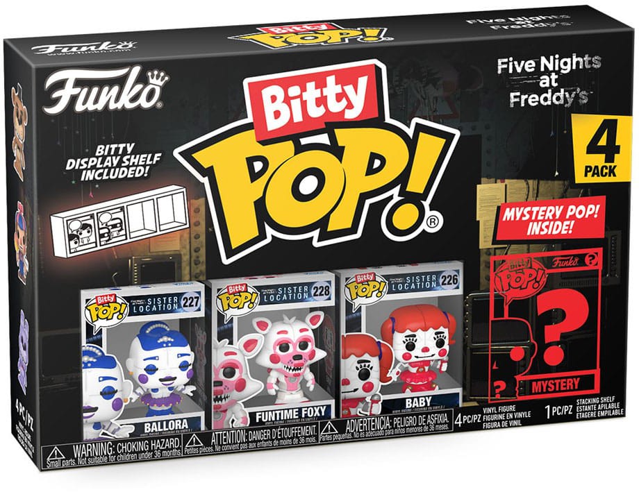 Varje 4-pack levereras med en sällsynt eller hyper sällsynt mystery Bitty Pop! för att komplettera serien.