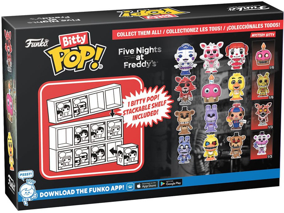 Varje 4-pack levereras med en sällsynt eller hyper sällsynt mystery Bitty Pop! för att komplettera serien.