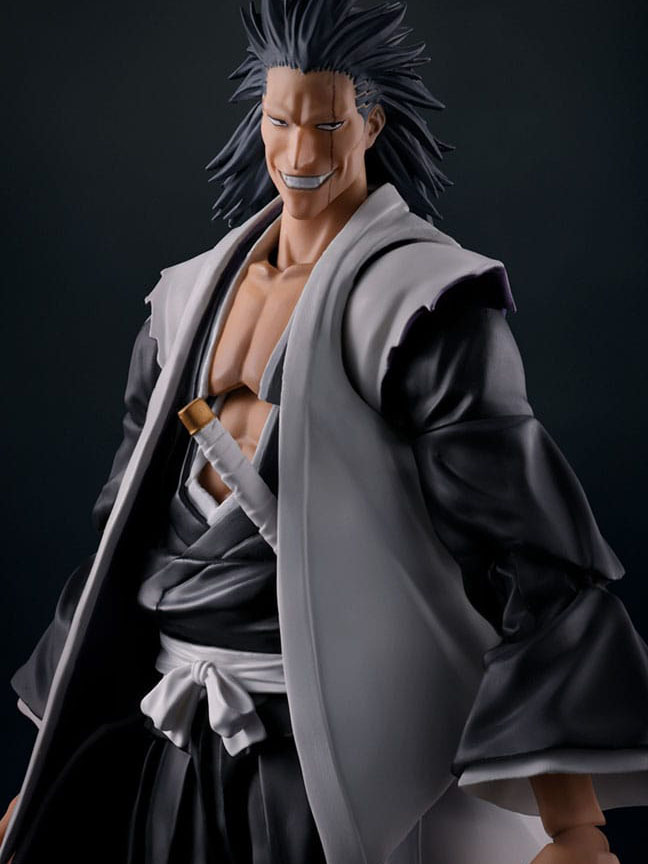From "BLEACH:Thousand-Year Blood War" comes KENPACHI ZARAKI! At 170mm, it's the biggest figure in the S.H.Figuarts BLEACH series to date. Numerous optional expressions, hands, and of course, his Zanpakuto sword let you re-create your favorite scenes with ease.