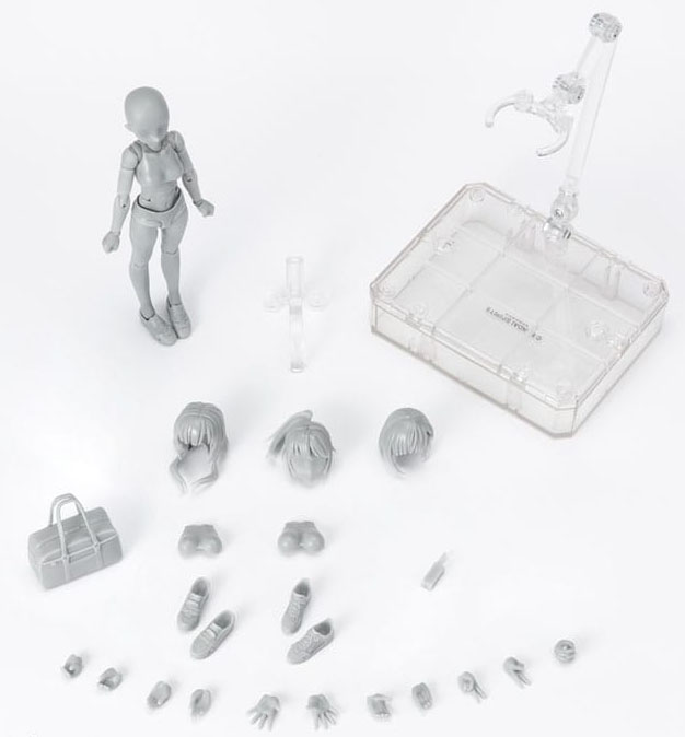 Body-kun and Body-chan figures are a huge support in your drawing efforts! BODY-CHAN -School Life- Edition DX SET (Gray Color Ver.) joins S.H.Figuarts with a redesigned, slightly younger head and body balance. Centering on school life, it comes with all sorts of accessories designed for a young person going to school. The accessories and the hair and shoes are all removable!