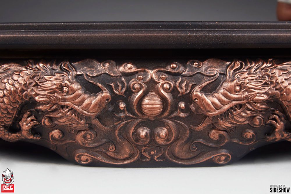 Inspirerad av en ikonisk era av hans produktiva karriär, är Bolo Yeung: Kung Fu Tribute 1:3-statyn ett samlarobjekt med en helt skulpterad atletisk kroppsbyggnad, kostymerad med röda och svarta tygshorts och ett rött tygbälte. De hängande remsorna på det vita och röda pannbandet som skulpterats på hans porträtt är av tyg för extra realism. Stående på en bronsfärgad bas med drakdetaljer, slår han en bred pose och förblir lätt på sina tejpade fötter som förberedelse för ytterligare en fight. Bolo Yeungs rasande uttryck ramas in av lurvigt svart hår, och hans spända muskler indikerar att han är en formidabel fiende och en perfekt mittpunkt för alla samlares actionfilmssamling.
