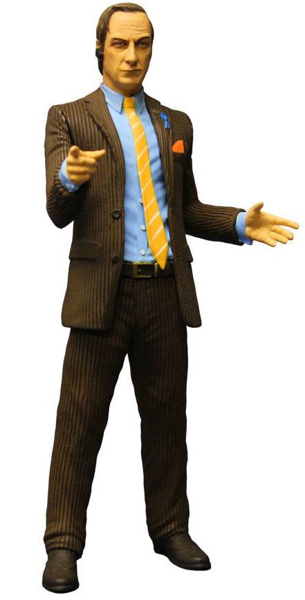 Relive the tense, edge of your seat excitement of Breaking Bad as Mezco's Breaking Bad: Saul Goodman Action Figure stares at you! This unforgettable figure features the notorious Saul Goodman in his iconic suit, forever yelling into his wireless telephone earpiece. Everybody's favorite sleezeball stands 15 cm tall and comes complete in a window box package.