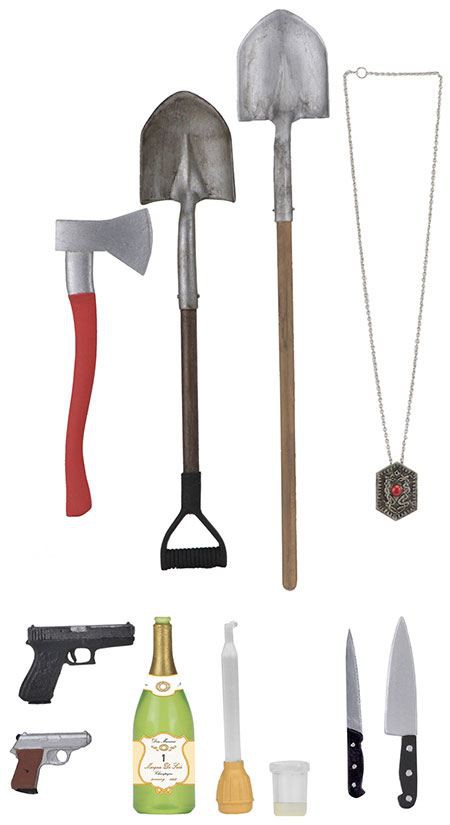 This Ultimate action figure 2-pack includes Chucky and Tiffany, who features a fabric skirt and an extra set of removable arms so she can wear her iconic leather jacket. The set also includes tons of accessories to recreate the movie's best scenes: 6 interchangeable heads, 2 shovels, 2 pistols, 2 knives, bottle, baster, necklace and more! The figures stand 10 cm tall and have over 20 points of articulation.