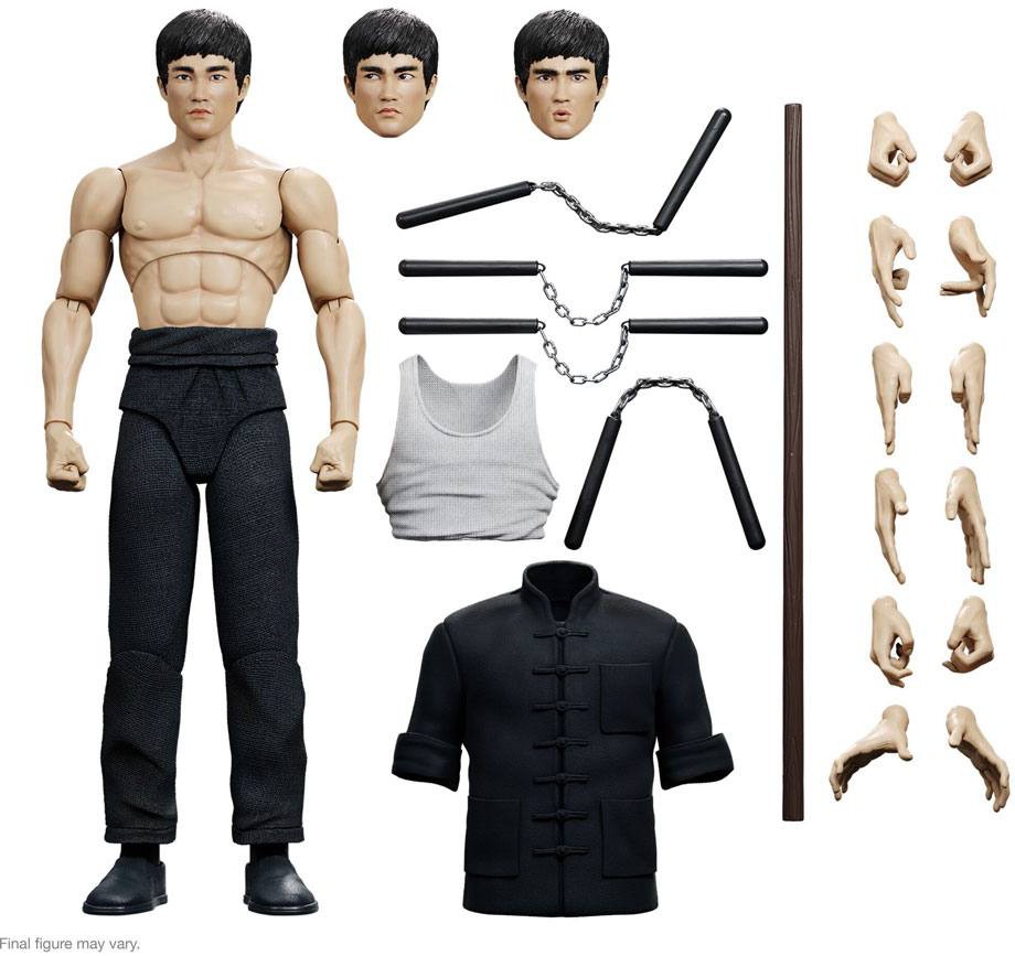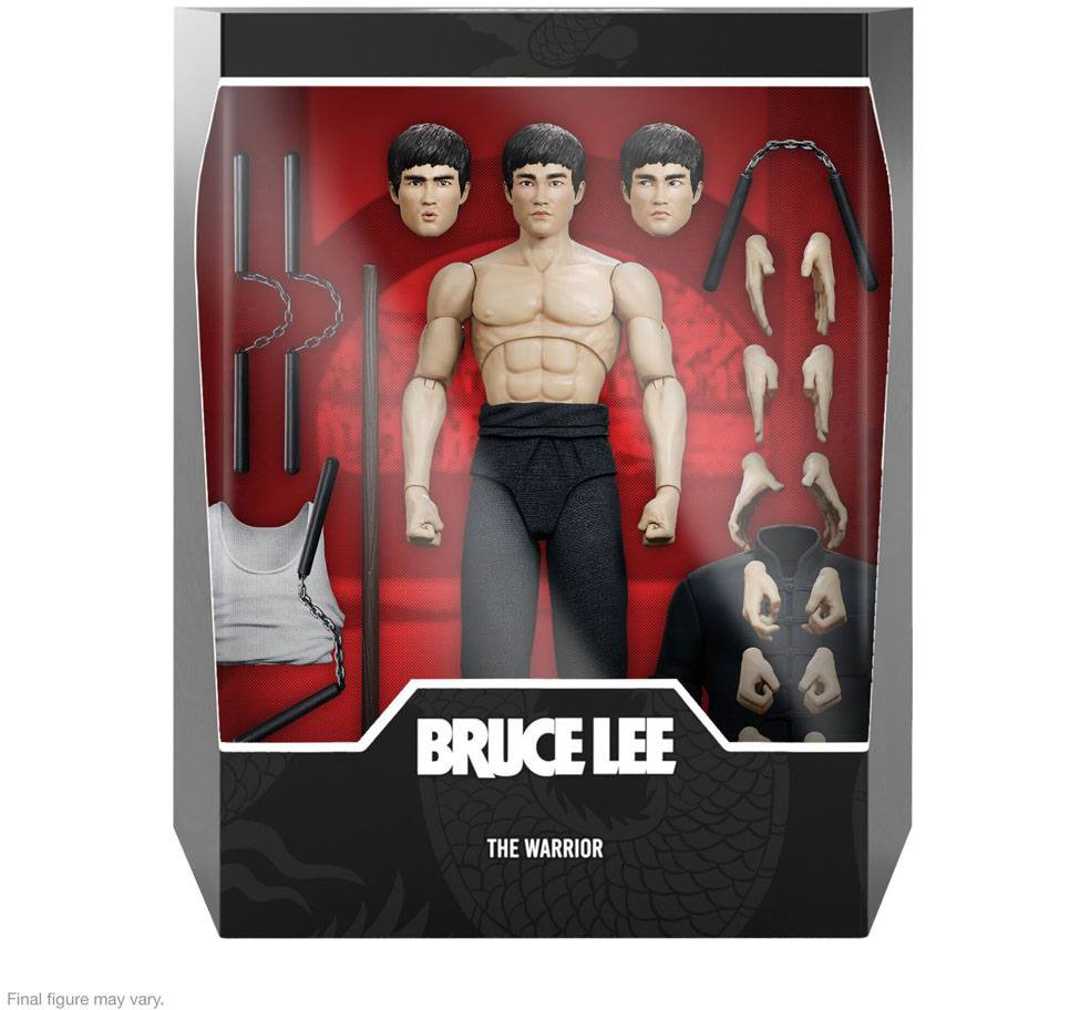 Despite his tragically short time in the spotlight, Bruce Lee was able to cast a huge shadow that spanned the globe, encompassing not just martial arts, but Hollywood, pop culture, and the imagination of millions of fans! This 7" scale highly articulated ULTIMATES! figure of "The Warrior" features Bruce Lee in his kung fu outfit and comes with interchangeable alternate heads & hands and a variety of other accessories, including real metal chain nunchucks, a bo staff, and removable soft goods undershirt & jacket. Don't miss the connection, get your made-to-order Bruce Lee ULTIMATES! Figures while you can because your chance to get one, much like a punch from Bruce Lee, will pass in the blink of an eye!