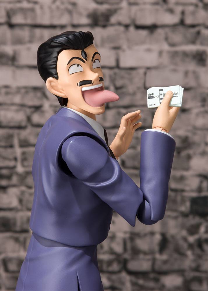 A figure of the fan-favorite side character from Case Closed, featuring all of the comical expressions and accessories you need to re-create your favorite scenes! Display him with S.H.Figuarts Edogawa Conan and Mouri Ran (sold separately) to expand your display possibilities even more. The figure includes three expression parts, five left and four right optional hands, a business card, and a racing track ticket.