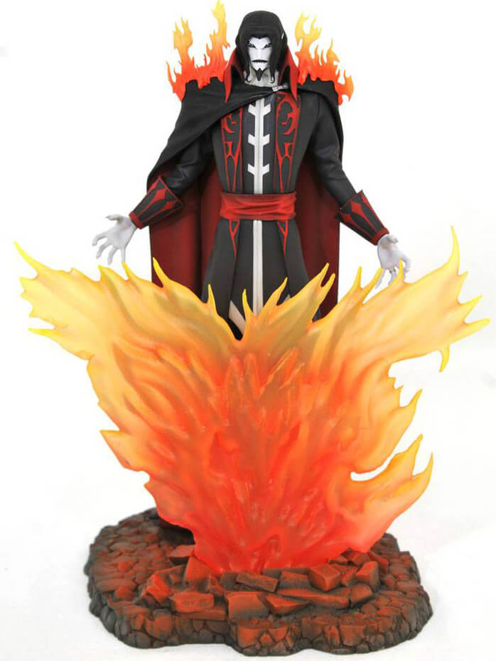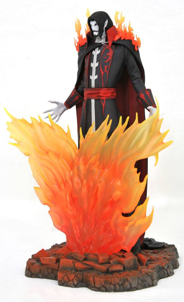 As seen on the hit Castlevania TV series on Netflix, Dracula has risen! The king of the vampires stands tall and ready to take on all comers in this latest PVC diorama in the Gallery line. Measuring approximately 9 inches tall, this PVC sculpture is made of high-grade plastic and features detailed paint applications. Designed by Caesar, sculpted by Rocco Tartamella! Packaged in a full-color window box.