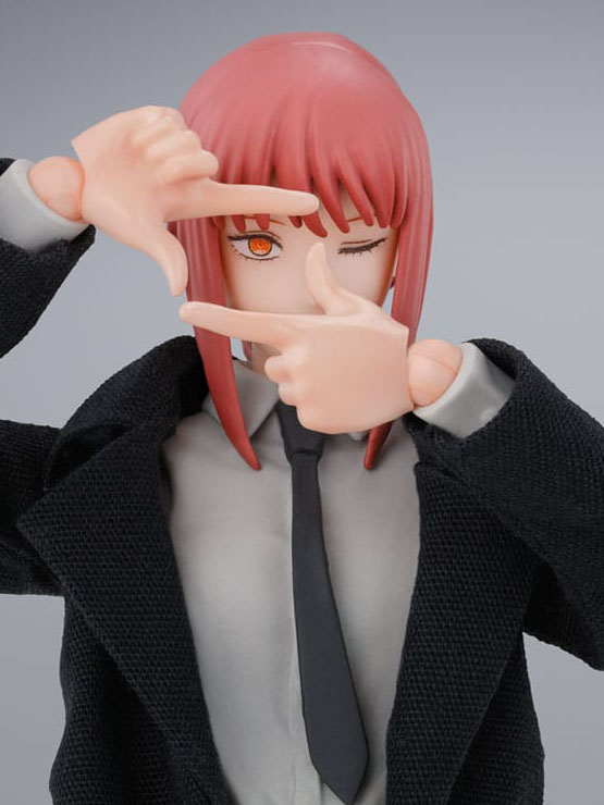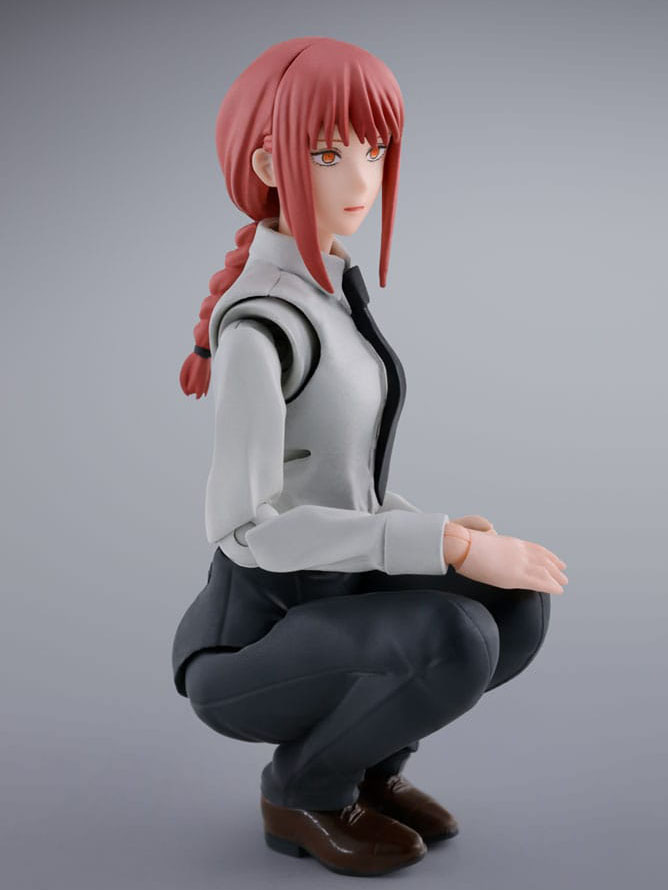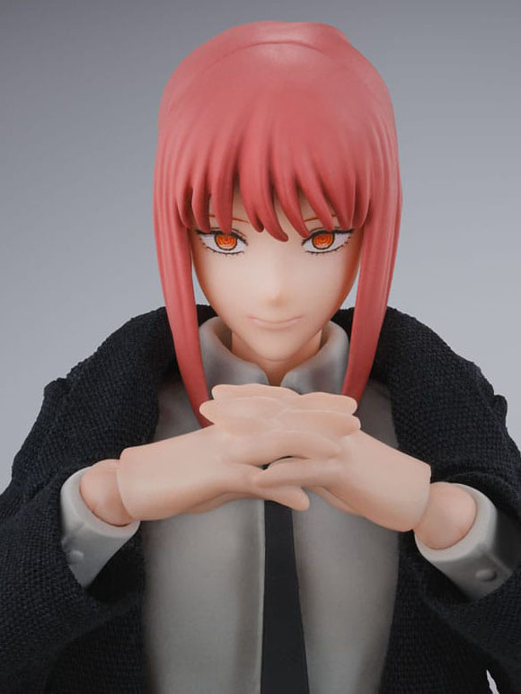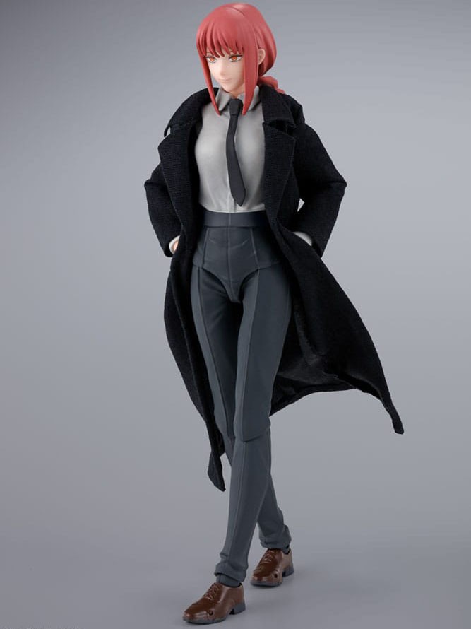 MAKIMA from CHAINSAW MAN joins S.H.Figuarts with exquisitely accurate sculpting and incredible full-body posability! A cloth coat with embedded wires allows for flexible and dramatically evocative poses. Optional expression parts and legs let you re-create your favorite scenes.